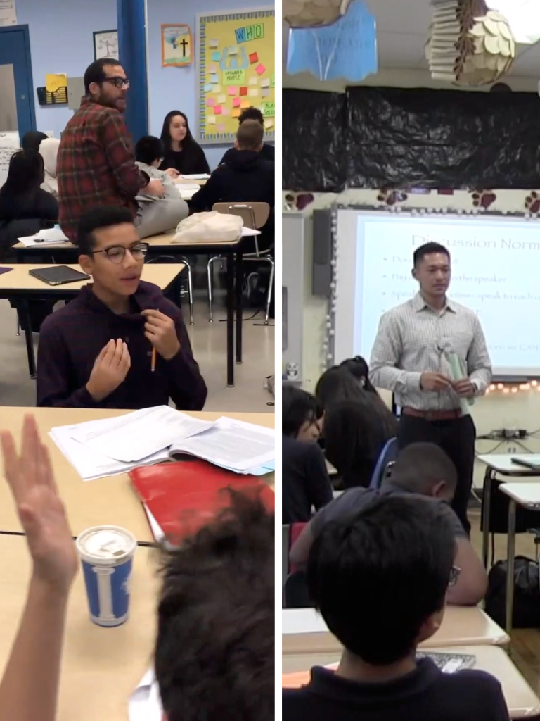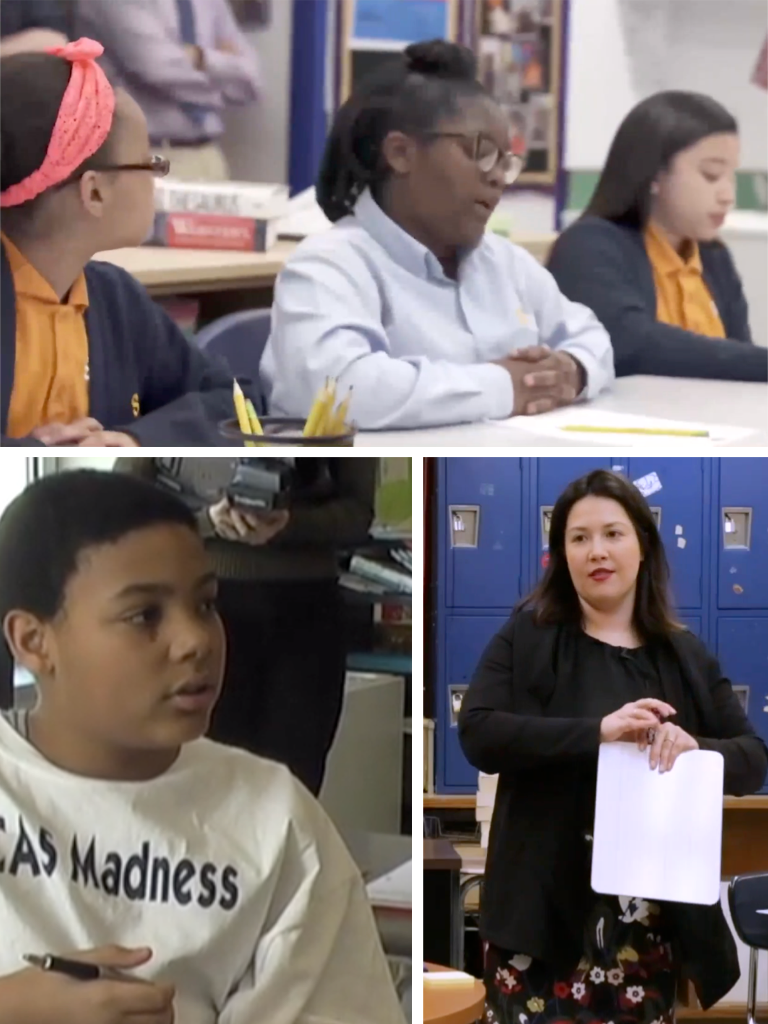 These discussions thrive on differing ideas or perspectives. At times, the goal is to arrive at a common understanding —such as why a hotpack becomes hot when the divot is turned, or why multiplication and addition arrive at the same answer when calculating volume. And sometimes, the goal is to make and defend legitimately different points of view—such as whether John Brown was crazy for attacking a U.S. arsenal, or whether doctor assisted death should be legal. Unlike connecting discussions, in which each student’s ideas or experiences are equally relevant, these discussions often follow a line of argument, allowing the student whose position is being challenged or who has identified relevant evidence to respond.